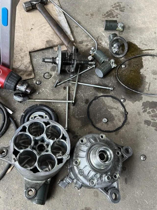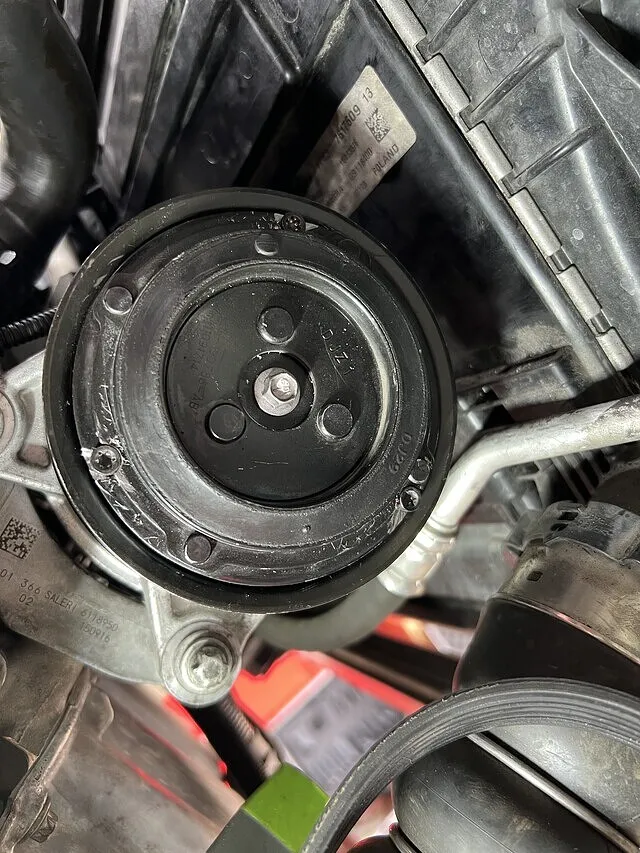 商品入荷で交換作業に早速ハプニング、コンプレッサー見た目プーリーの出面など同じですけどコンプレッサーベルトの掛かる部分のクラッチ機構が電気式と直結式の違いが発覚、同じドナーを見つけることは困難ですので